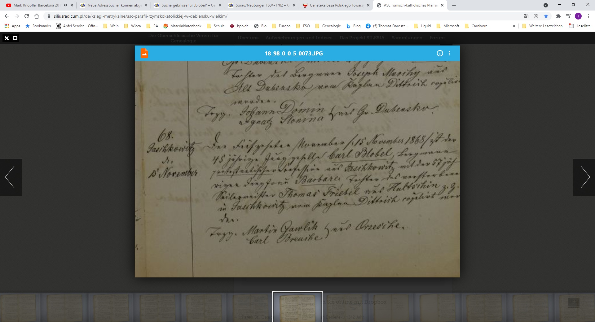 Thomas Friebel wurde in Hultschin geboren. Er verstarb vor 1868 Thomas Friebel Jahr(en.)