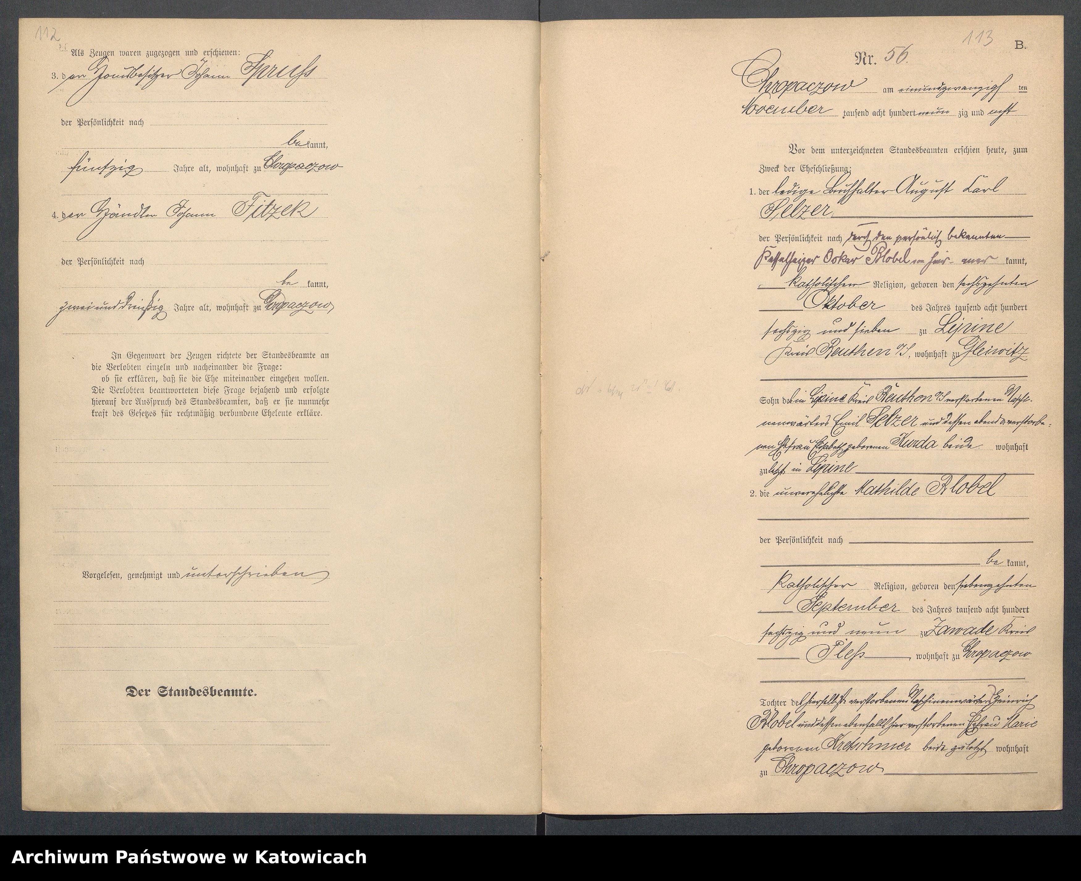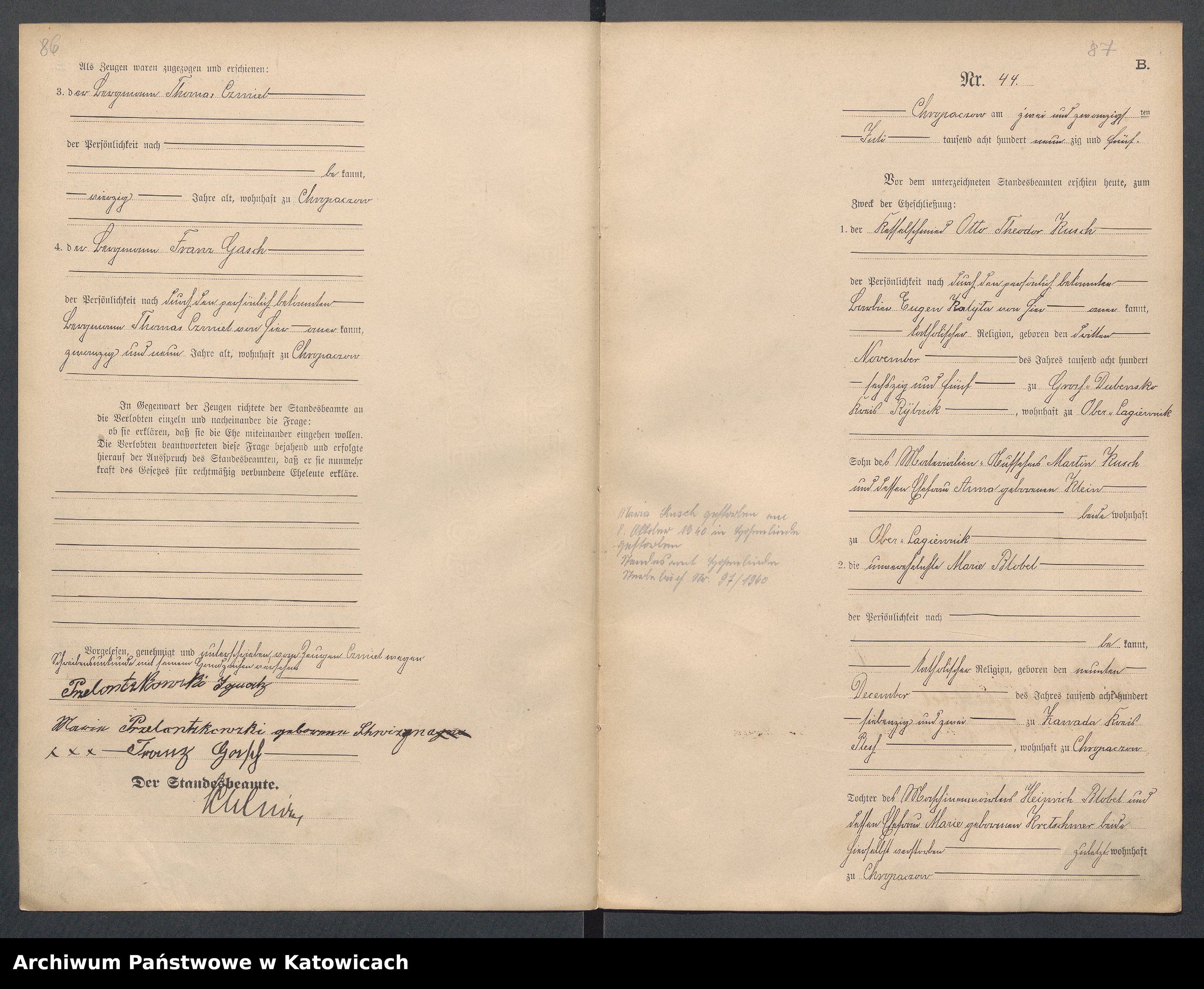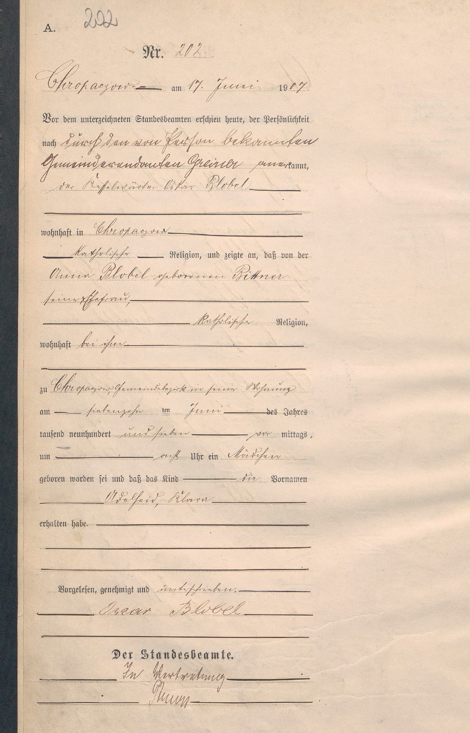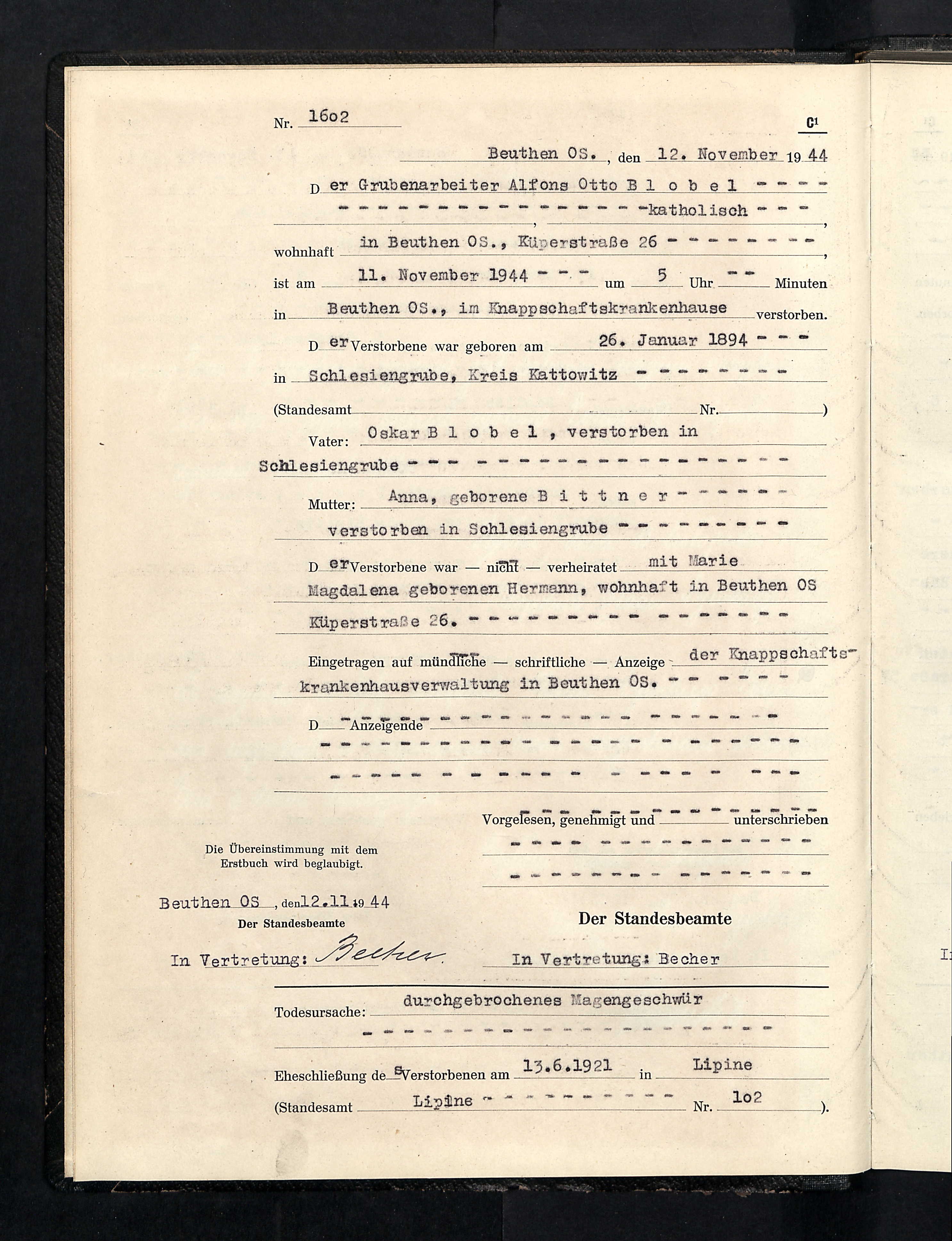 Otto Theodor Kusch am 22 Juli 1895 in Chropaczów (Schlesiengrube.) Sie verstarb am 8 November 1940 Marie Blobel Jahr(en.)