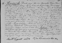 Im Jahr des Tausendachthundertzwanzigsten, am zwanzigsten Tag des Monats Oktober, um zehn Uhr morgens, vor uns, dem Kommandanten der polnischen Armee, der die Aufgaben des Standesamtes der Gemeinde Jzkubiey im Kreis Kowalcki in der Region Okwądza Kniawska in der Woiwodschaft Mazowsze wahrnahm, erschien Maciej Gracz, ein Witwer, geboren gemäß den uns vorgelegten Kirchenbüchern, der sechsundzwanzig Jahre alt ist und bisher bei seinen Eltern gewohnt hat.