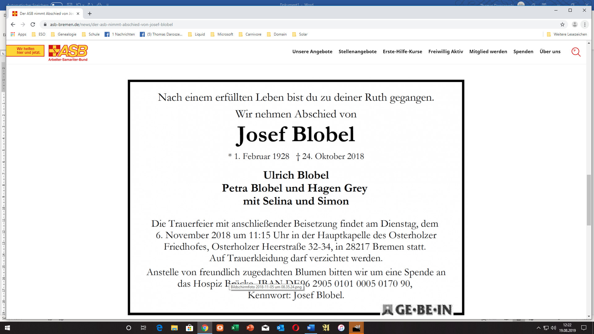 Todesanzeige Josef Blobel