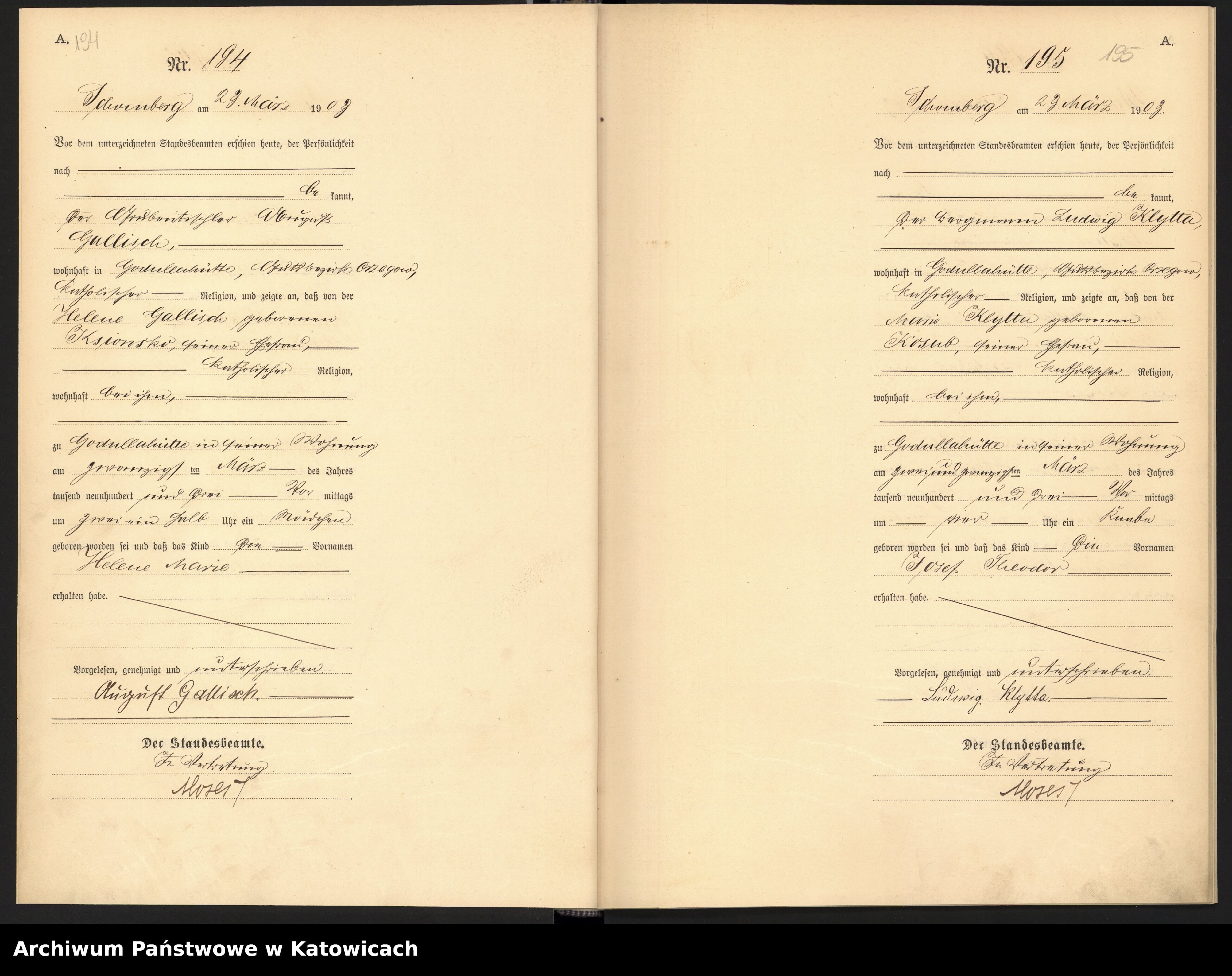Geburt Helene Galisch 1903