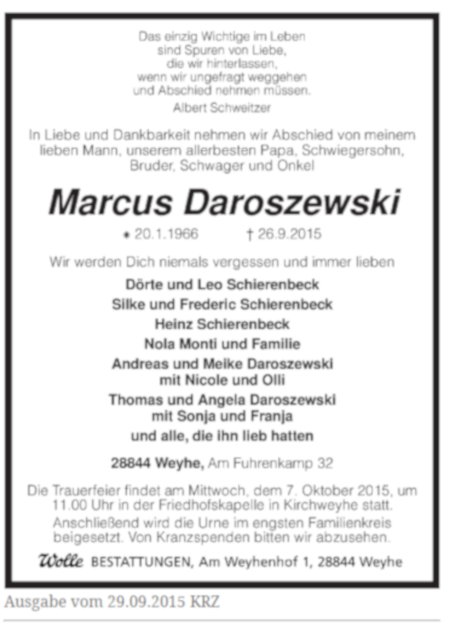 Marcus Todesanzeige
